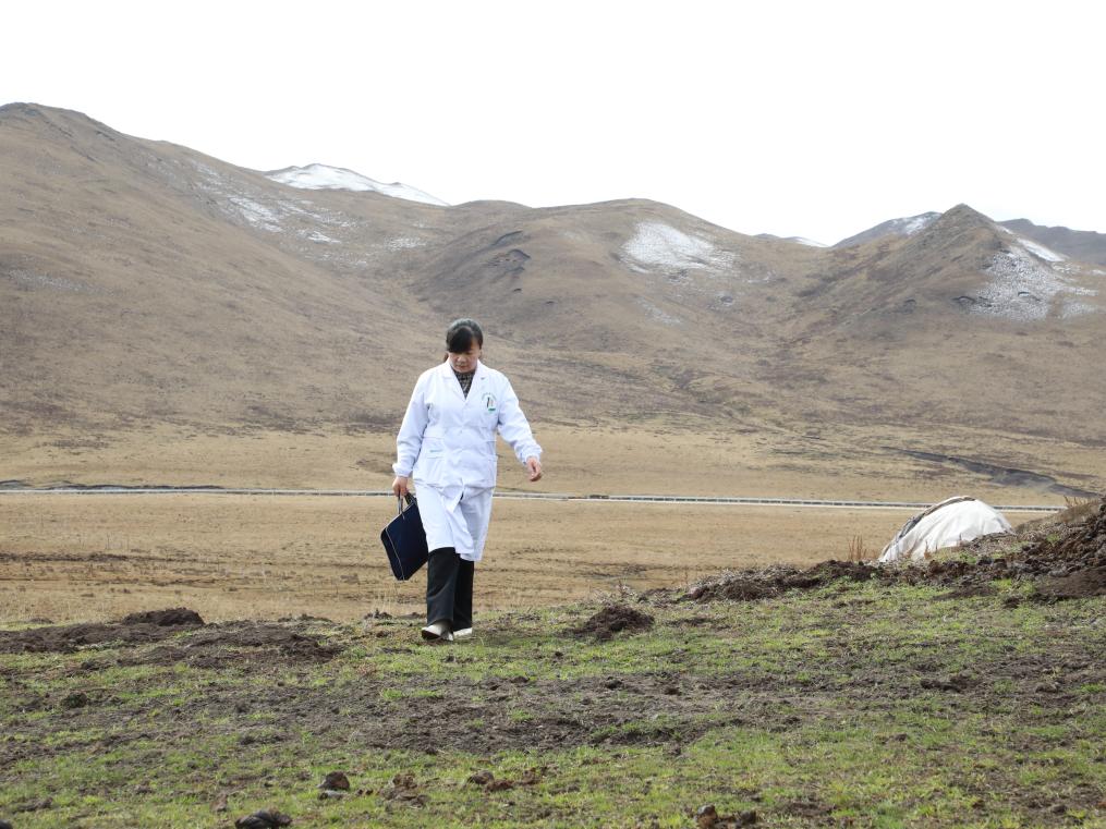 这天,王蒋艳乘车来到60公里外的藏族牧民索南草家中。从县城到牧场的路面坑洼不平,牛羊不时“阻断”去路,往返一趟常常耗费大半天。