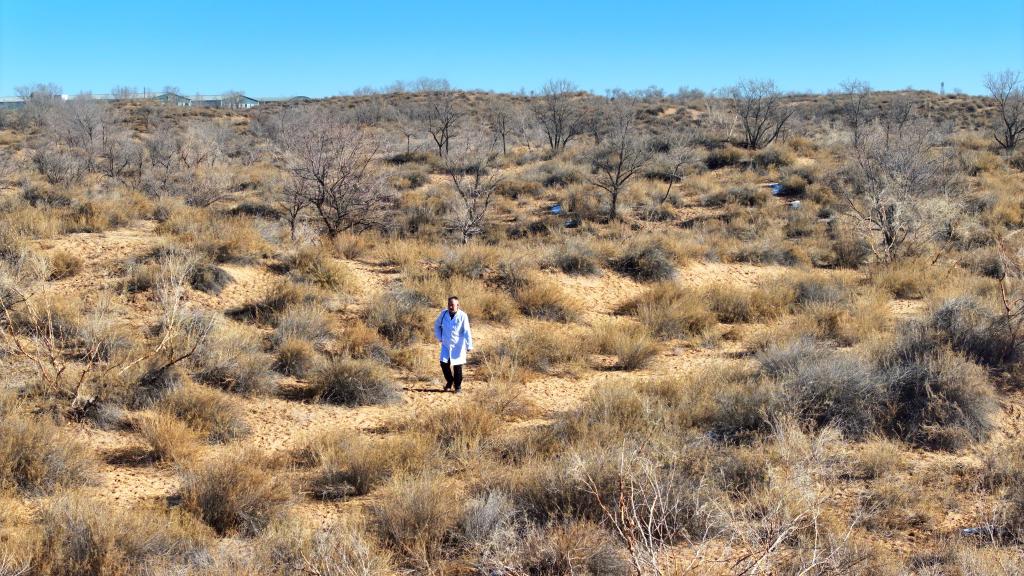 12月4日,张万泰行走在古浪县境内的腾格里沙漠南缘。新华社发